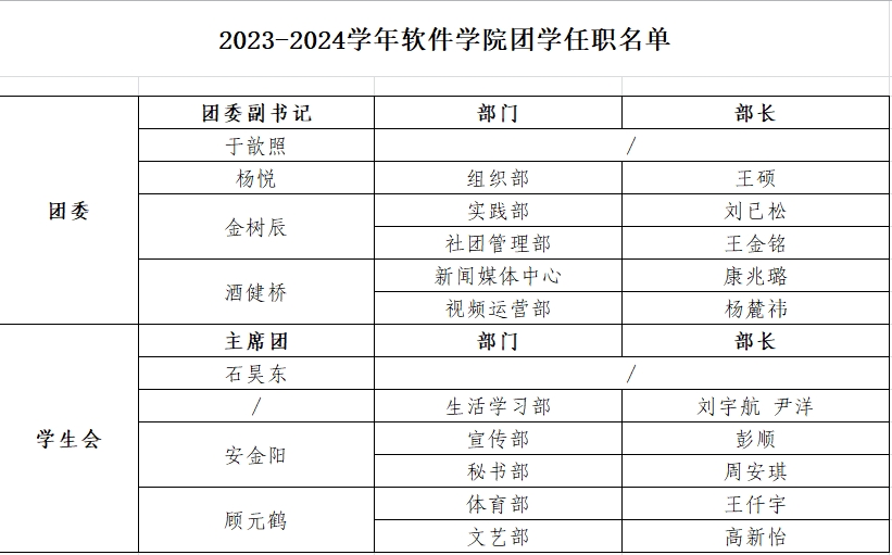 EMC易倍官方网站团学组织任职名单(2023.9)