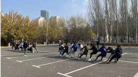 本次趣味运动会包括“迷你铁人三项”、“背对背心连心”、“拔河”、“指点江山”、“乒乓球接力赛”、“足球保龄”六项活动。首先进行的比赛项目是拔河比赛,双方分别是研二和研一的同学,比赛随着裁判清脆的哨声拉开了序幕,最终研二同学的配合略优于研一的同学,赢得了最终的胜利;接着进行了“迷你铁人三项小接力”,这项比赛机考验了员工的个人身体素质,还考验了同学之间的相互配合。随后进行的是背靠背心连心,相较于“迷你铁人三项”,背靠背心连心和指点江山这两个比赛项目就更多的是考验同学们之间的默契配合,随着比赛的进行,选手们相互磨合,逐渐和队友的节奏协调在一起,速度也有了明显的提升。最后进行的是乒乓接力和足球保龄项目。