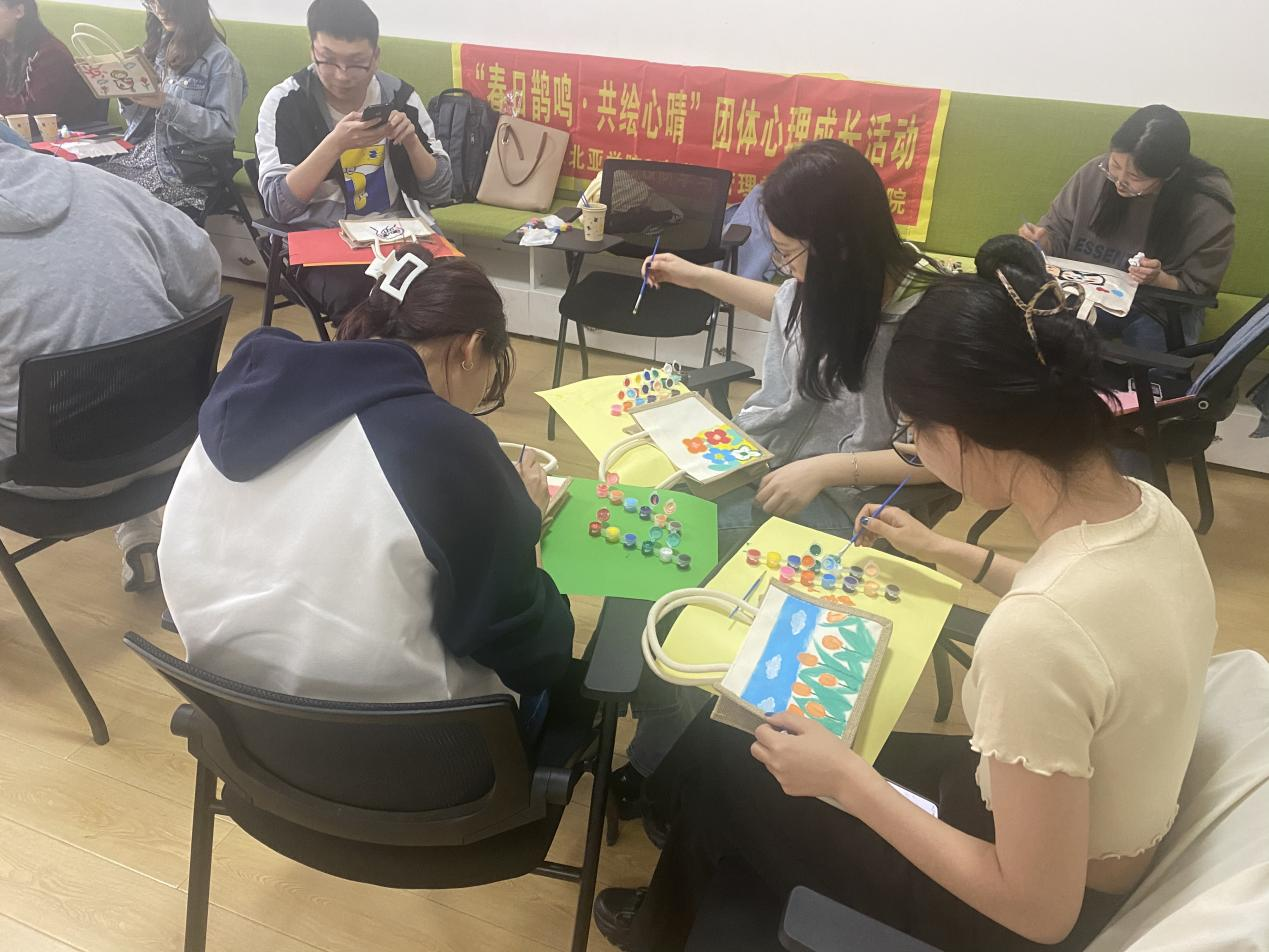 为进一步营造校园心理健康良好氛围,引导同学们正确认识自我,提高心理素质,丰富同学们的课余生活,缓解研究生生活压力,EMC易倍官方网站、商学与管理公司和东北亚公司三院研究生朋辈心理辅导员联合开展以“春日鹊鸣·共绘心晴”为主题的帆布包涂鸦活动。