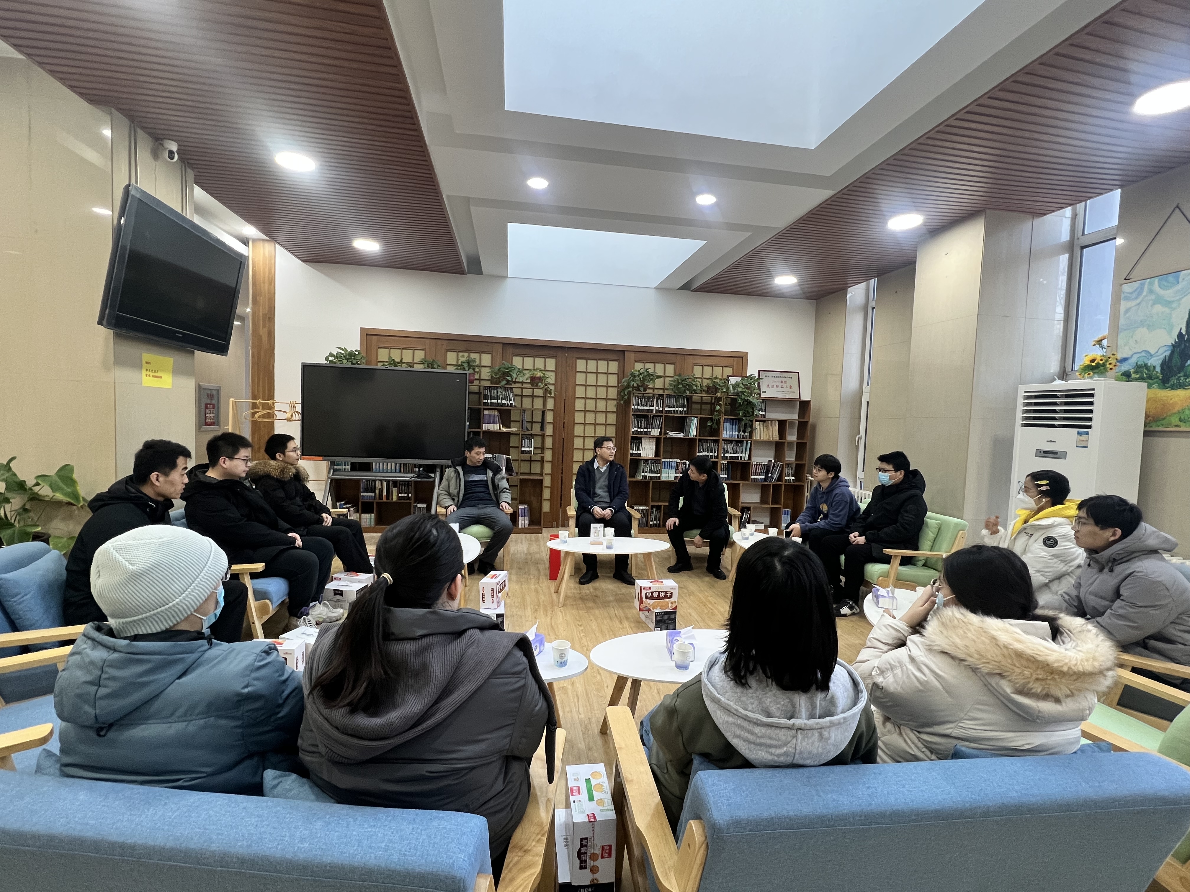 在轻松愉快的氛围下,留校同学一一介绍了假期留校的原因以及生活学习计划,包括读书学习、论文撰写、就业准备等,与会老师对同学们的假期安排给予关怀,并对衣食住行以及学习计划提出指引。杜天宝副书记表示,同学们要利用好在校的机会,养成良好的作息习惯,学有所得;高战国副书记希望同学们利用假期时间适当放松休息,调整状态以迎接新学期;张译心老师嘱咐同学们多跟家人联系报平安,并在节日到来之际给家人送上节日祝福。