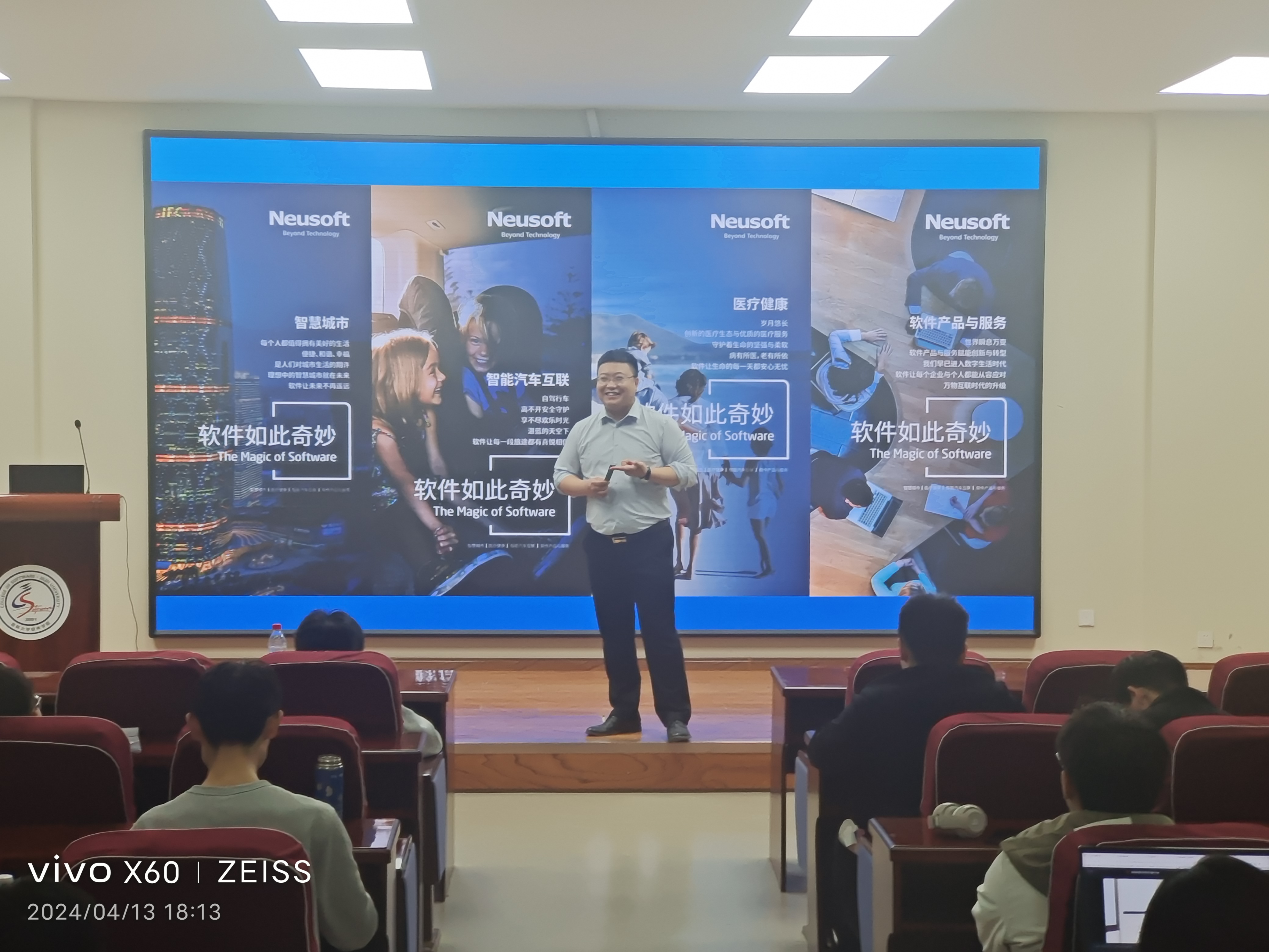 活动伊始,主讲人首先向在场同学详细介绍东软集团的发展历程、业务布局以及企业文化,并对现阶段信息技术行业的总体形势进行全面的分析。他指出,在新一代信息通信技术飞速发展和各行业数字化转型深入推进的现实背景下,EMC易倍官方网站的同学们拥有较多的就业机遇和良好的职业发展前景,但同时人工智能技术的进步所产生的“替代效应”也使得IT行业对人才综合素质的要求不断提高,同学们不仅需要掌握扎实的专业技能,而且必须具备较好的沟通协调能力及自主创新思维。鉴于此,他鼓励同学们在校期间要提前做好职业生涯规划,认真学习专业课程知识,努力向学、学以致用,不断培养团队合作意识和综合实践能力,更好地报效国家、服务社会。