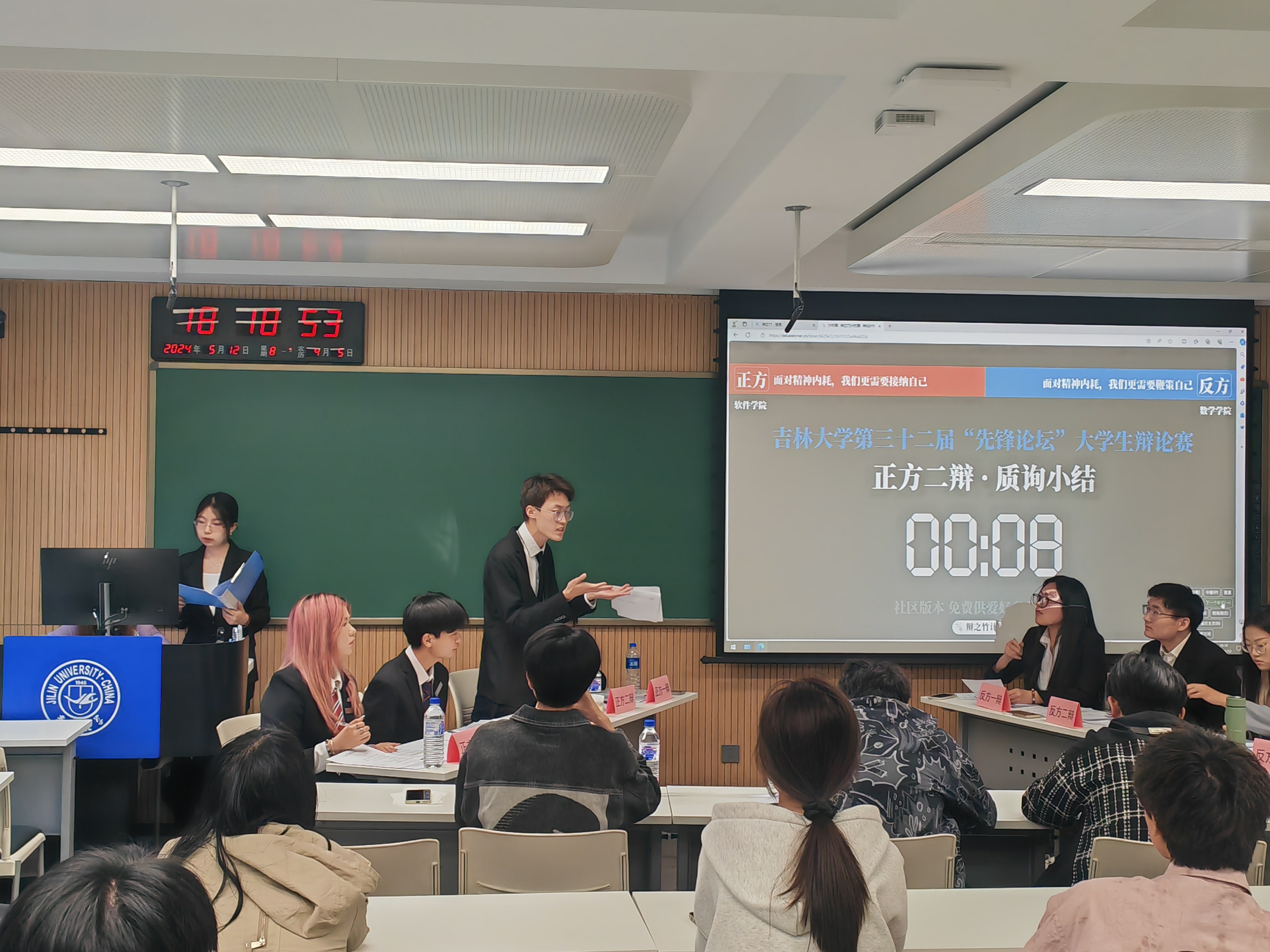 在5月13日与5月20日进行的小组赛中,EMC易倍官方网站与数学公司就“面对精神内耗,我们更需要接纳自己/鞭策自己”这一辩题展开辩论。公司先后持正方和反方与数学公司进行对战,对辩题进行了充分的讨论。5月13日的比赛中,公司以3:6的比方暂时落败;在5月20日的比赛中,公司以1:8的比分赢得比赛,陈峻权同学获得单场最佳辩手,最终公司成功晋级16强。