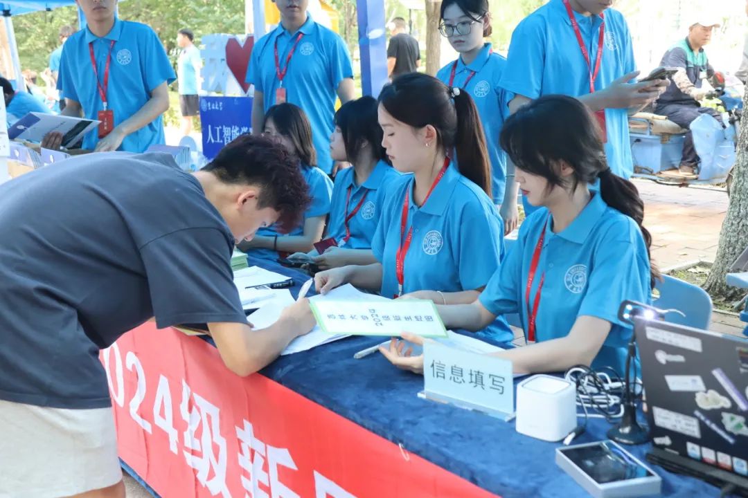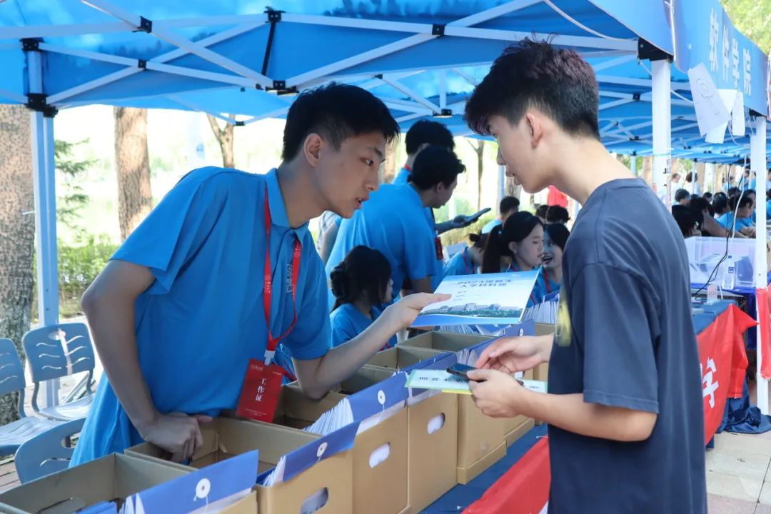 8月23日的迎新现场气氛热烈、井然有序。新生们踏入校园首站便是精心布置的迎新展位。这里,他们进行身份确认、照片采集、信息登记,并领取新生材料袋,完成报到手续。每一位新生的脸上都洋溢着对未来的期待和梦想,而迎新工作人员的细致关怀与热情服务,确保了每一个环节都严格细致且高效便捷。