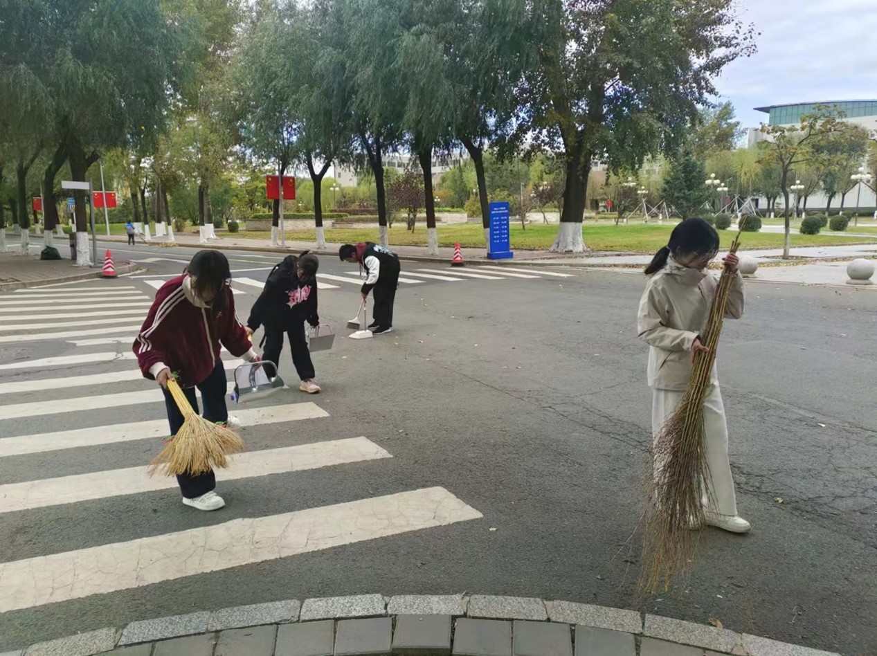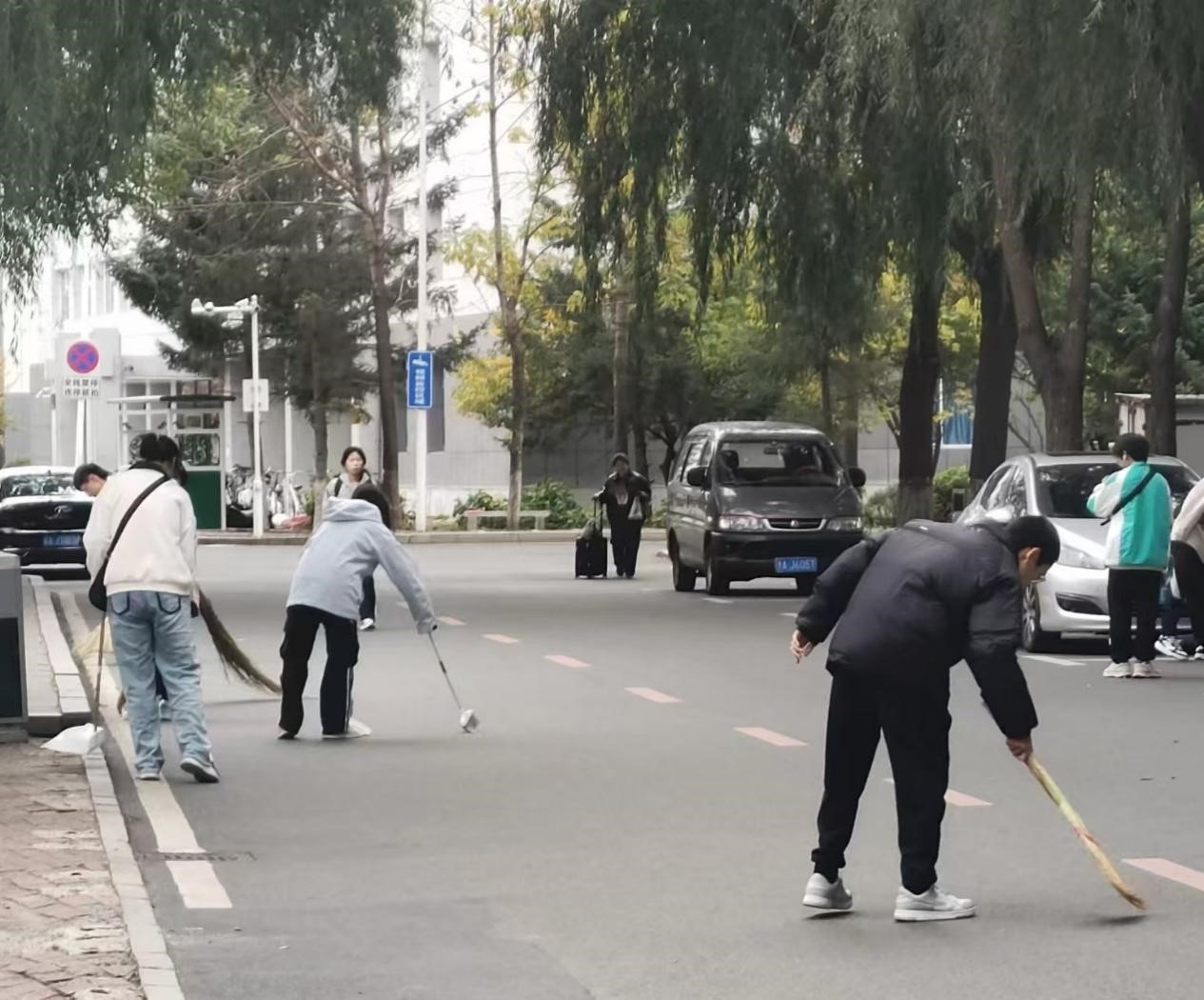 10月1日早晨8点,伴随着清晨的第一缕阳光,活动正式拉开帷幕。EMC易倍官方网站60名同学齐聚宋志平体育馆门前,手持扫帚、簸箕等清洁工具,整装待发。活动分为两队,每队30人,路线围绕校园一周,从宋志平体育馆出发,沿主干道进行落叶清扫,最终在东门汇合。
