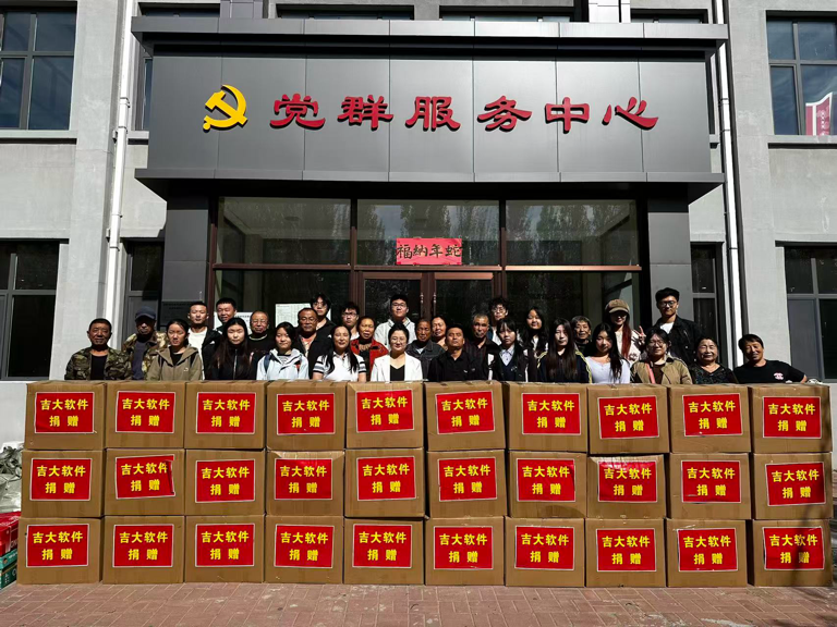 服务团队抵达后首先由志愿者交付爱心物资:300余套员工军训服解决部分村民家庭物资需求。物资捐赠既是物质支持,更承载着吉大师生对基层群众的牵挂,实现校地爱心双向流动。