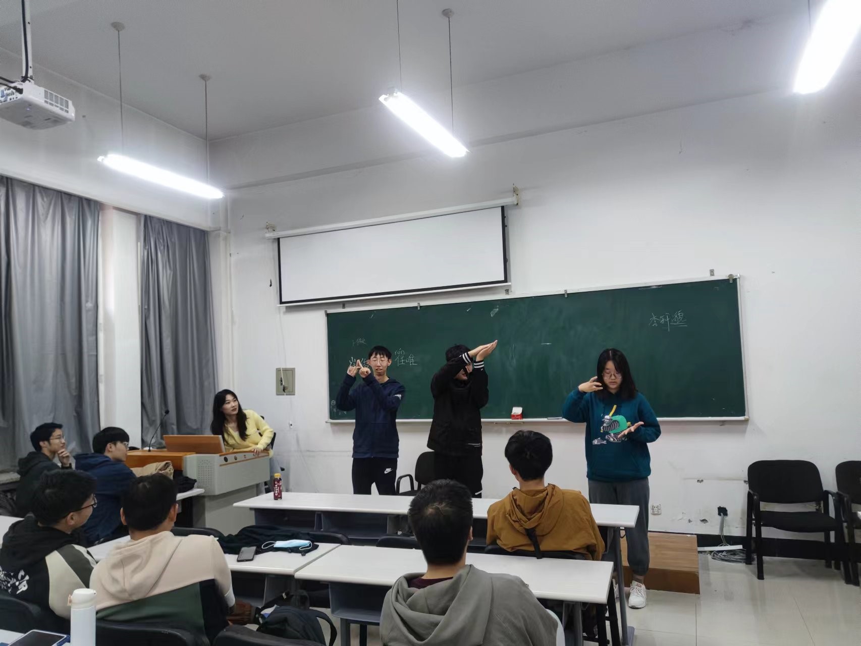 最后是“人体字母”活动,每组3-6名同学,用身体摆出了HAPPYARE等单词,其他组成员轮流猜是什么单词。让同学们提高空间立体感,培养良好的团队合作能力和意识。