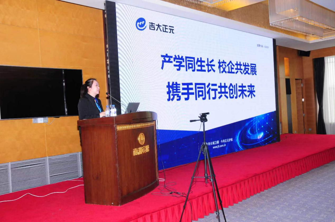 吉大正元信息技术股份有限公司研究院经理柴园园教授做了题目为《产学同生长 校企共发展 携手同行共创未来》的报告