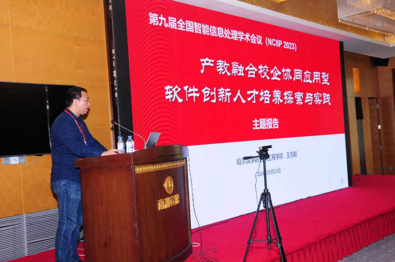 哈尔滨公司信息工程公司(EMC易倍官方网站)姜德迅教授代王克朝经理做了《产教融合校企协同应用型软件创新人才培养探索与实践》的学术报告